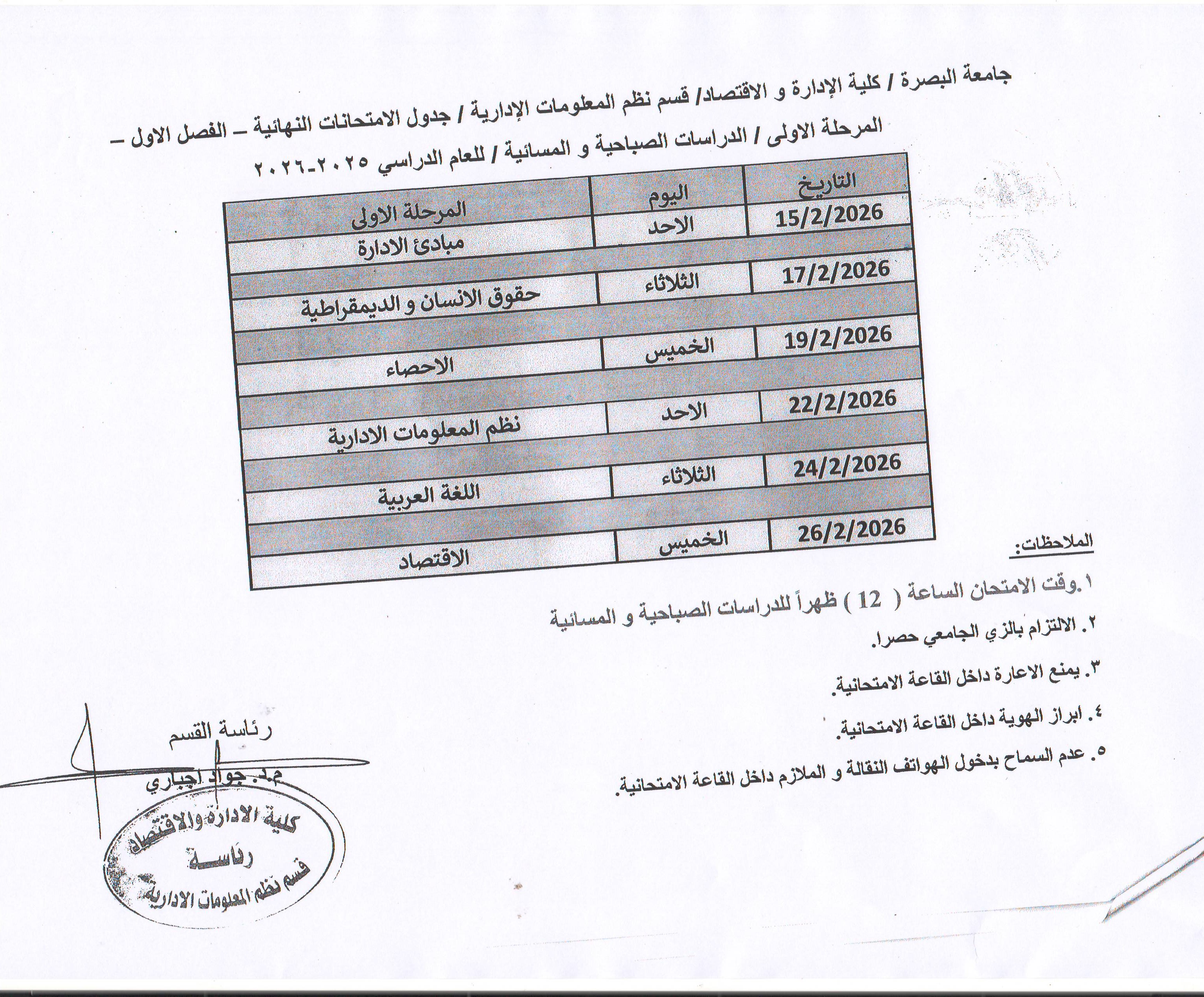 الامتحانات النهائية/الجداول الالكترونية/قسم نظم المعلومات الادارية