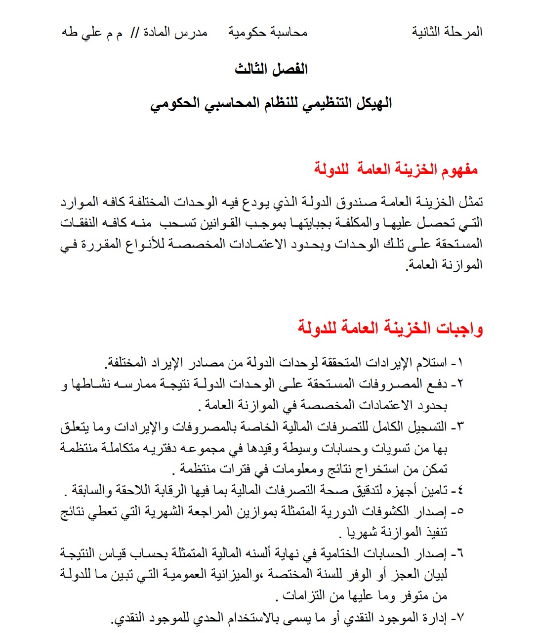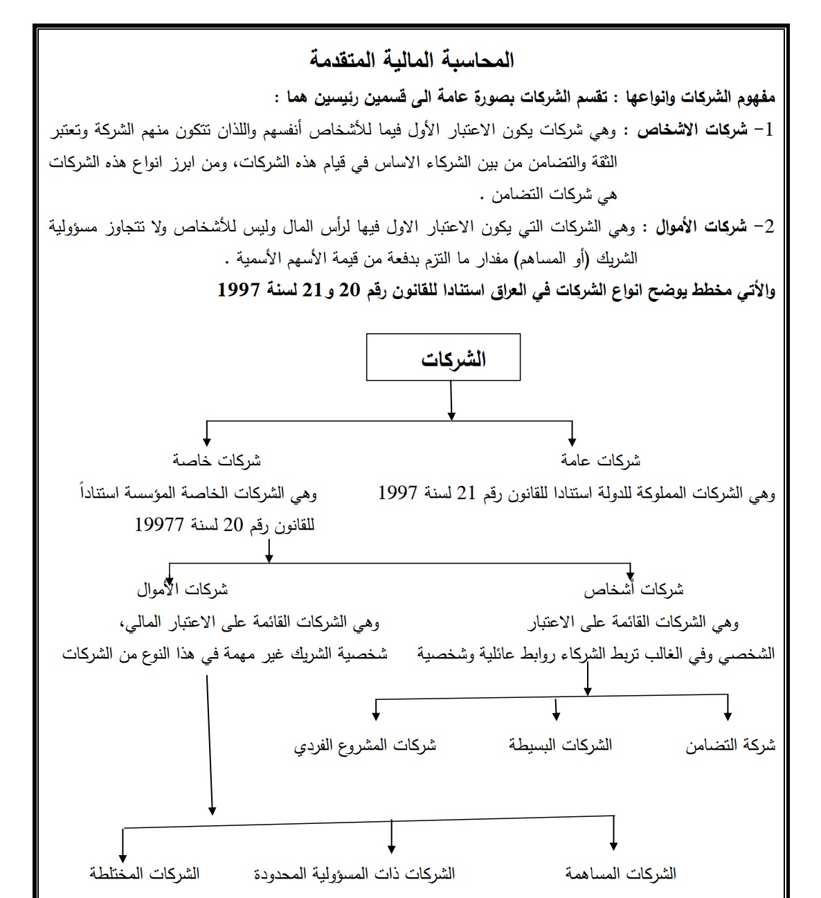 الاسئلة الامتحانية-الدراسة الاولية- قسم المحاسبة