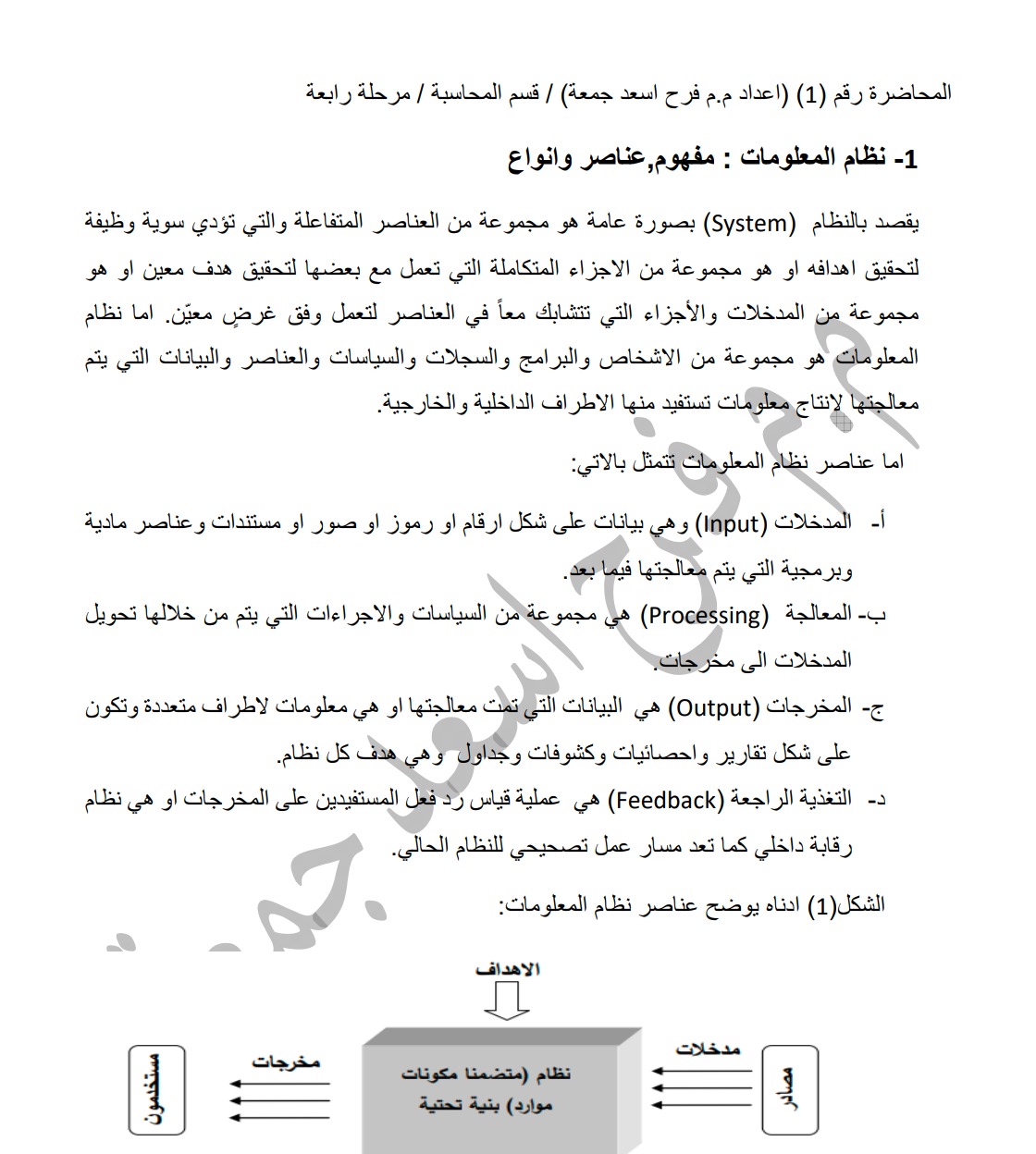 الاسئلة الامتحانية- قسم نظم المعلومات
