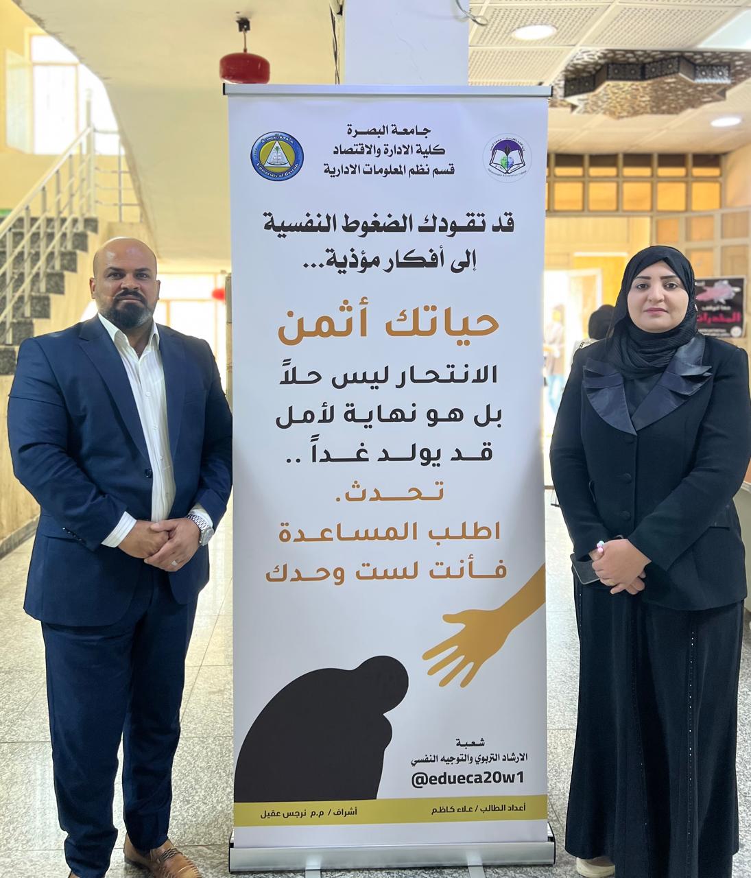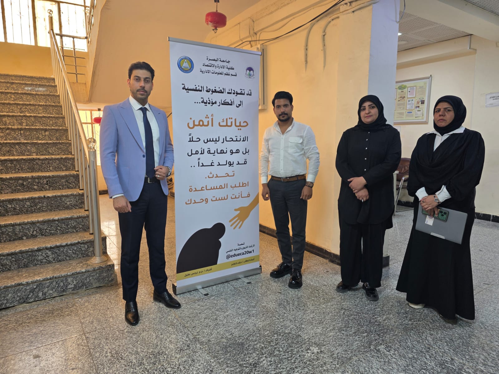 نظّمت كلية الإدارة والاقتصاد/ قسم نظم المعلومات الإدارية بالتعاون مع وحدة الإرشاد التربوي والتوجيه النفسي بجامعة البصرة حملة توعوية لنشر بوسترات إرشادية داخل أروقة الكلية، بهدف تعزيز الوعي النفسي والسلوكي لدى الطلبة وتشجيعهم على تبني السلوك الإيجابي في مواجهة الضغوط.