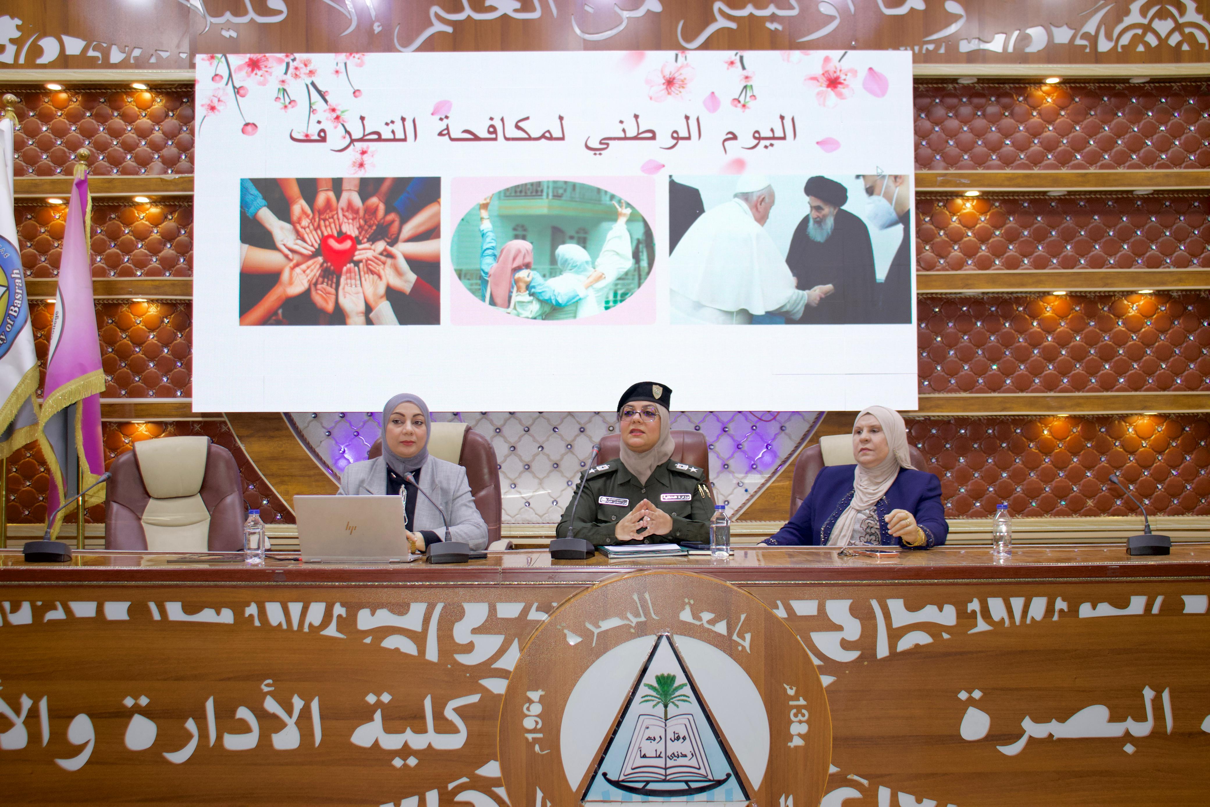 نظمت كلية الإدارة والاقتصاد وحدة الإرشاد التربوي والتوجيه النفسي و بالتعاون مع مركز التطوير والتعليم المستمر في جامعة البصرة وقيادة شرطة محافظة البصرة / شؤون المرأة، ضمن فعاليات الاحتفال باليوم الوطني لمحاربة التطرف العنيف، ورشة إرشادية بعنوان تعزيز ثقافة السلام وقيم التسامح والتعايش بين الطلبة والدعوة لمحاربة التطرف.