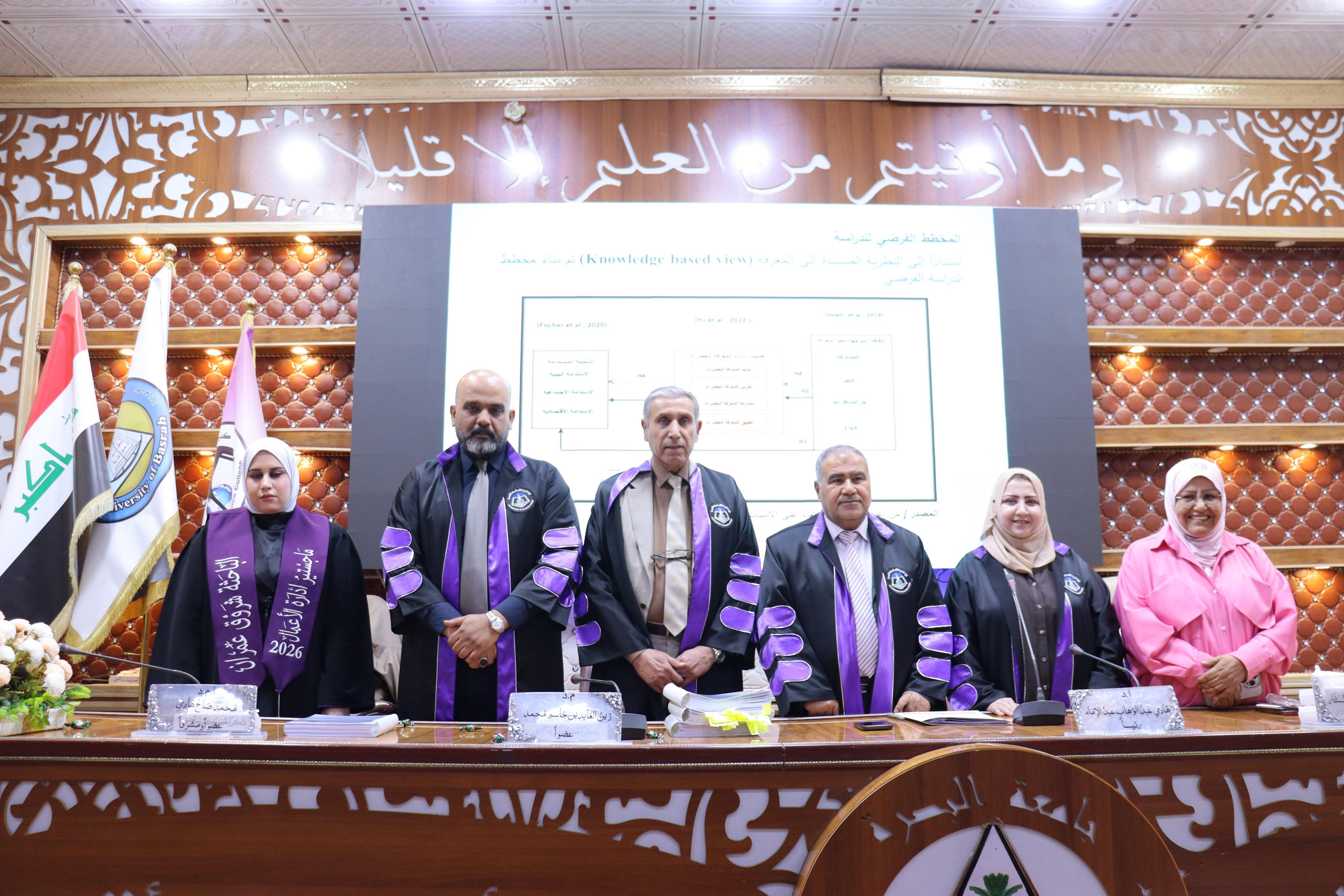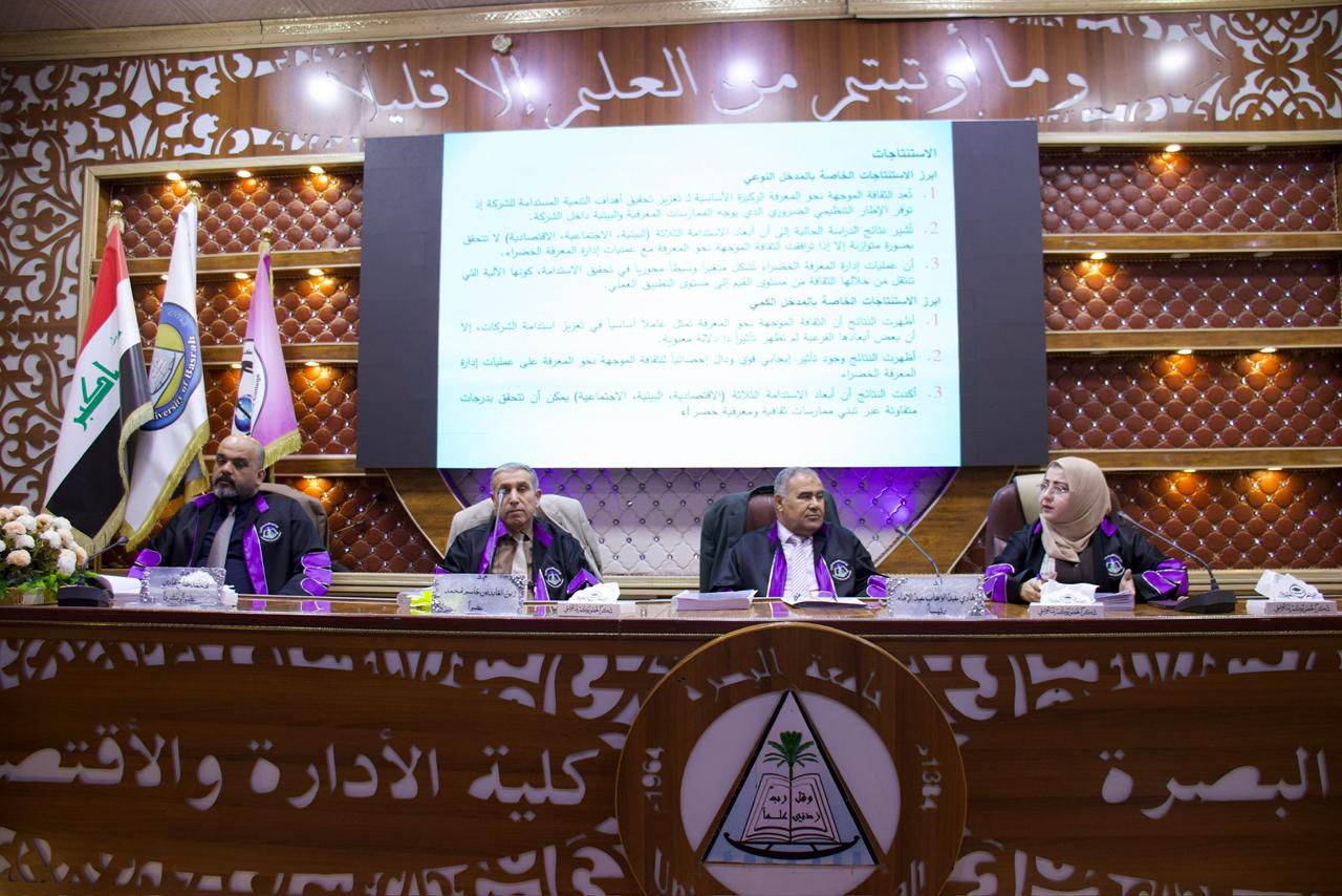 وهدفت الرسالة التي قدمتها الطالبة شروق عمران صيهود إلى استكشاف الدور الذي تؤديه الثقافة الموجهة نحو المعرفة في تحقيق أهداف التنمية المستدامة من خلال التوسّط بعمليات إدارة المعرفة الخضراء، وذلك ضمن سياق قطاع النفط العراقي.