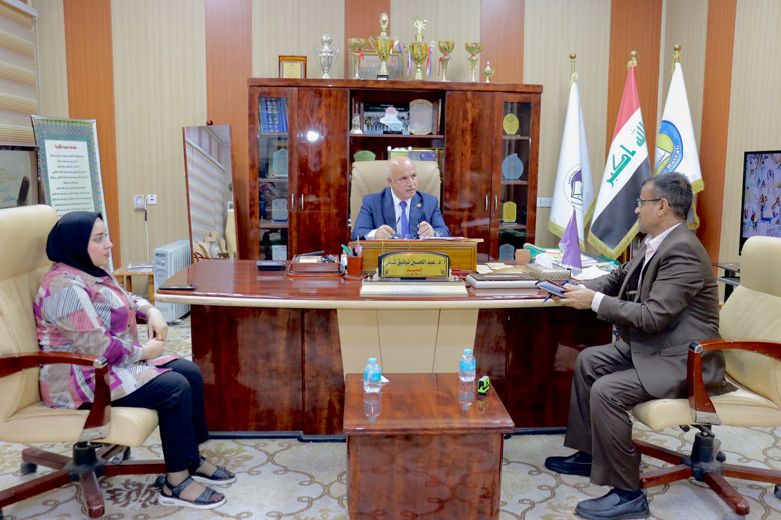 زار أمين عام المكتبة المركزية في جامعة البصرة، الدكتور أحمد رزاق جعو، عميد كلية الإدارة والاقتصاد، الدكتور عبد الحسين توفيق شبلي، لبحث سبل التعاون بين الجانبين. وناقش الطرفان آليات تعزيز الخدمات المكتبية وتطوير مصادر المعرفة بما يخدم الطلبة والباحثين. كما تناول اللقاء إمكانية توسيع المشاركة في الفعاليات العلمية والأكاديمية المشتركة، والتنسيق في البرامج التي تسهم في دعم العملية التعليمية ورفع جودة الأداء داخل الجامعة. تأتي هذه الزيارة في إطار الحرص على توطيد العلاقات بين تشكيلات الجامعة وتعزيز التكامل في خدماتها.